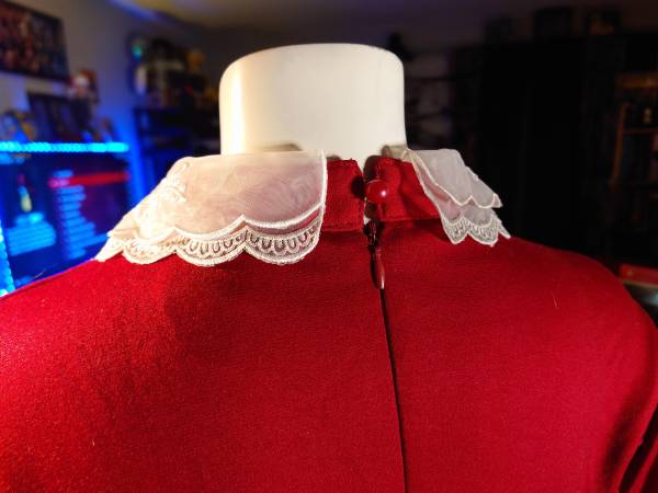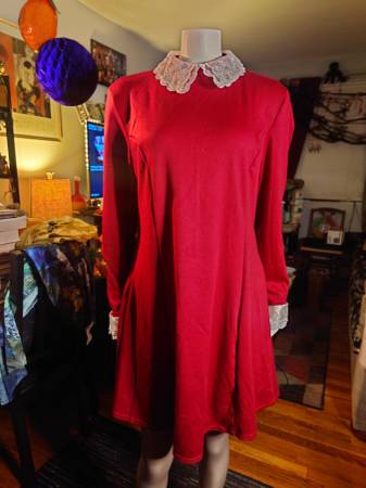 Archie Comics Sabrina Spellman Costume Spirit Halloween x Archie Comics Sabrina Spellman Costume Red dress with lace collars and cuffs Size: Large 12-14 *Mannequin is a size 4