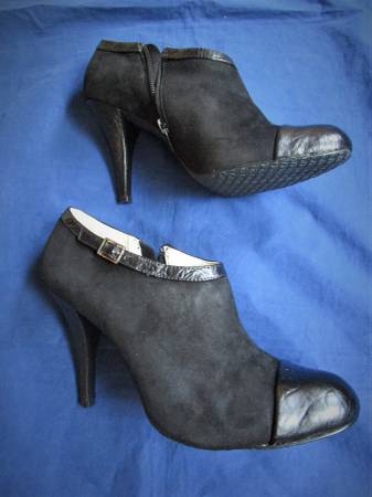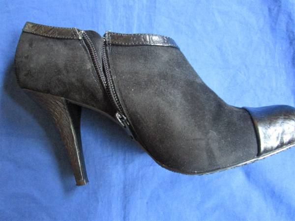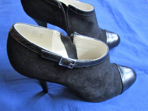 CALVIN KLEIN HIGH HEEL SUEDE BOOTIES w/LEATHER TRIM