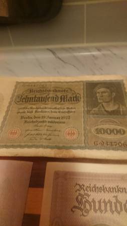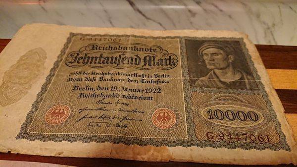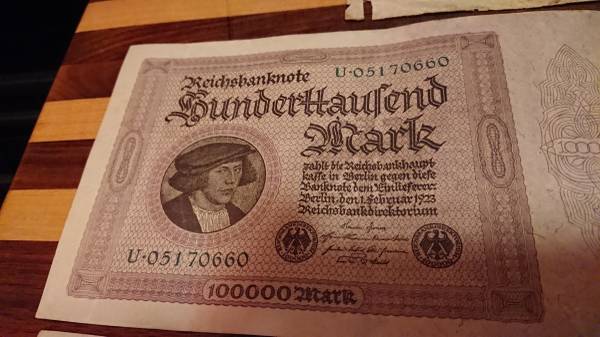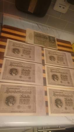 6x Mark Banknotes 1x Mark Banknote "Vampire Note" These bills are from the hyperinflationary period of the Weimar Republic in Germany, before World War II