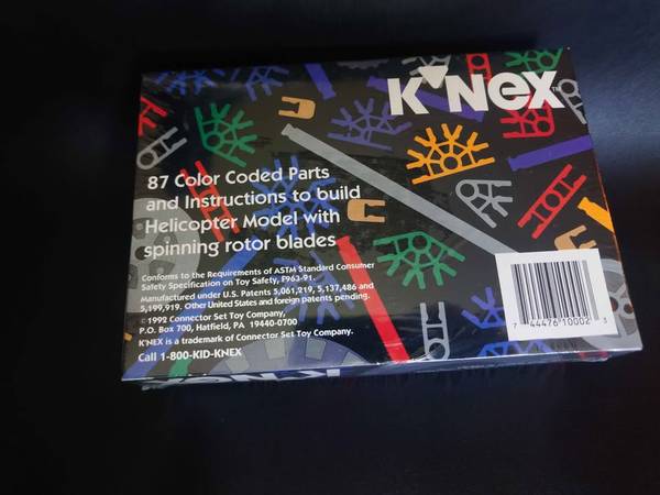 Vintage 1992 K'NeX Helicopter 87 Piece Color-Coded Construction Set Helicopter Model with Spinning Rotor.Blades Mint Condition and Still Sealed