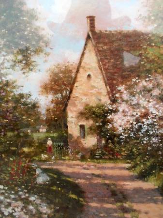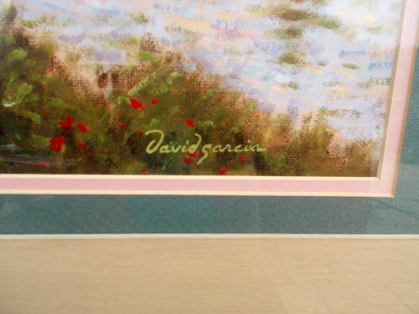 " Le Chemin Des Hortensias" Impressionist print by David Garcia, excellent, 42 x 32, hanging rings on back. art paint painting litho lithograph