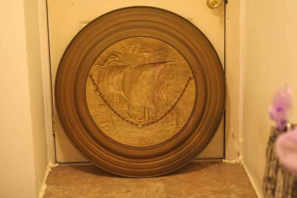 Bronze metal vintage embossed wall hanging.