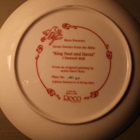 RECO numbered plate “King Saul and David” I Samuel 18:10 in excellent condition local pick up,cash