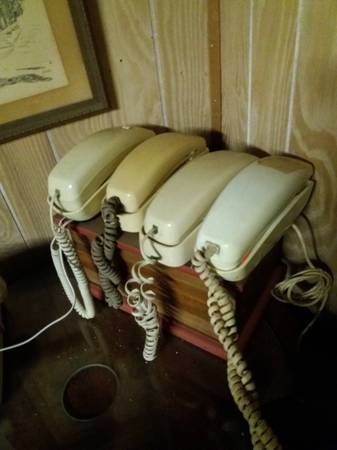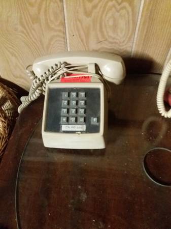 Vintage dial and push button phones. May even work. For props, displays, decorative, conversation piece. $35 EACH Cash ,local pick up Serious? Send a telephone number ,not questions.