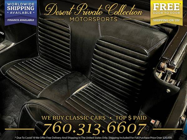 WE BUY CLASSIC CARS - CONSIGN and SELL - PHOTO SHOOT RENTAL IS AVAILABLE California buyers must pay CA sales tax , all prices in USD . Disclaimer-Finance Requirements listed at our website-Price does not include sales tax and DMV registration fees Monthly payment is based on approved Credit for more Inventory VISIT OUR WEBSITE https://www.desertprivatecollection.com/ or call (760) 313-6607 FOR CONSIGNMENT PLEASE CONTACT US (760) 313-6607