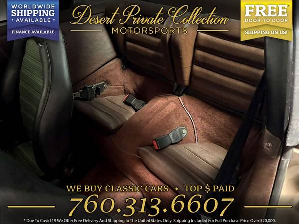 WE BUY CLASSIC CARS - CONSIGN and SELL - PHOTO SHOOT RENTAL IS AVAILABLE California buyers must pay CA sales tax , all prices in USD . Disclaimer-Finance Requirements listed at our website-Price does not include sales tax and DMV registration fees Monthly payment is based on approved Credit for more Inventory VISIT OUR WEBSITE https://www.desertprivatecollection.com/ or call (760) 313-6607 FOR CONSIGNMENT PLEASE CONTACT US (760) 313-6607