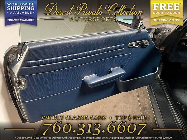 WE BUY CLASSIC CARS - CONSIGN and SELL - PHOTO SHOOT RENTAL IS AVAILABLE California buyers must pay CA sales tax , all prices in USD . Disclaimer-Finance Requirements listed at our website-Price does not include sales tax and DMV registration fees Monthly payment is based on approved Credit for more Inventory VISIT OUR WEBSITE https://www.desertprivatecollection.com/ or call (760) 313-6607 FOR CONSIGNMENT PLEASE CONTACT US (760) 313-6607