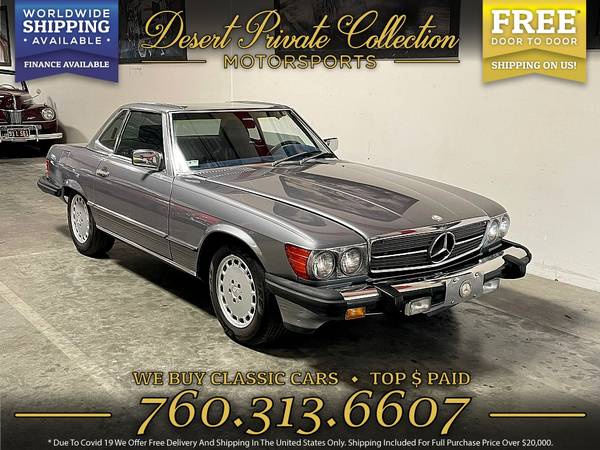 Welcome to our Timeless classic R 107 Chassis Mercedes Benz 560 SL. This California car has withstand the passage of time and with both its soft top and hard top (winter top) will let you experience motoring in style in any climate. With worldwide shipping available, it is easier than ever to get your California Dream Car delivered right to your Door!! Call us for details on this offer and thank you for stopping by our Collection.