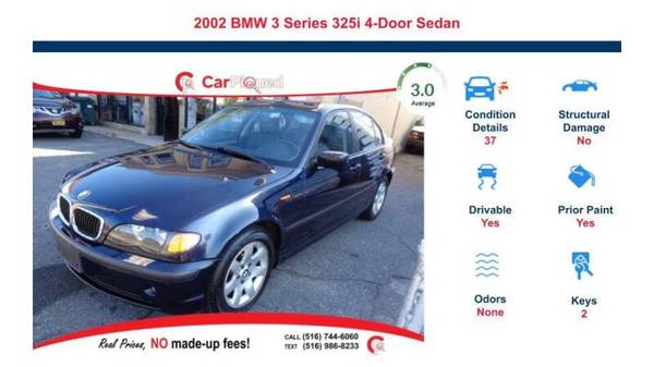 Well-maintained 2002 BMW 3 Series 325i — a classic, driver-focused sedan with BMW’s responsive inline-6 character and balanced handling. Clean title, non-smoker, and mechanically sound. Ideal for enthusiasts who appreciate solid build quality and engaging driving dynamics.