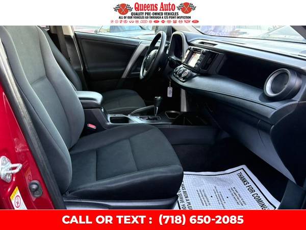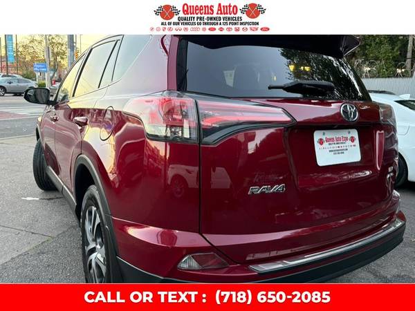 ✔️ 2018 Toyota RAV4 LE AWD – Fully Serviced, Detailed, and Backed by a Carfax Buyback Guarantee | VIN: 2T3BFREV0JW844052 | Available Now at Queens Auto ExpoIntroducing the 2018 Toyota RAV4 LE AWD, a perfect blend of reliability, capability, and everyday practicality. This well-maintained SUV has been fully serviced and professionally detailed, ensuring that it looks and drives like new. With 125,535 miles of proven performance and a Carfax Buyback Guarantee, you can purchase with total confidence knowing this vehicle has been inspected, maintained, and prepared to meet the highest standards of quality and safety. At Queens Auto Expo, located at 55-11 Northern Blvd, Woodside, NY 11377, we take pride in offering vehicles that deliver exceptional value and peace of mind. Visit us online at www.queensautoexpo.com to learn more or schedule your test drive today.EXTERIOR CONDITION & DESIGNThe 2018 Toyota RAV4 LE AWD is designed with bold lines, a confident stance, and a reputation for practicality. Its Dynamic Exterior Design showcases Toyota’s signature aggressive front fascia, accented by sharp halogen projector-beam headlights and a sleek aerodynamic silhouette. Finished in a classic, timeless color scheme, this RAV4’s refined contours emphasize both form and function, offering an ideal balance between sportiness and sophistication.The all-wheel drive (AWD) system gives you the traction and control needed to tackle all weather conditions—rain, snow, or shine. Whether navigating New York City streets or heading upstate for a weekend getaway, the RAV4 LE delivers confident handling and stability. The exterior is also equipped with durable body cladding and protective lower moldings that shield against road debris, keeping the paint and finish looking pristine.You’ll also find 17-inch steel wheels with stylish covers, complemented by all-season tires designed to maximize performance and comfort. The integrated rear spoiler, power-adjustable mirrors, and high-mounted LED stop light all contribute to the RAV4’s aerodynamic efficiency and contemporary design. Every detail on this vehicle demonstrates Toyota’s commitment to quality craftsmanship and attention to detail.INTERIOR COMFORT & FEATURESStep inside the cabin of the 2018 Toyota RAV4 LE AWD, and you’ll immediately notice the spacious and thoughtfully designed interior. Built with premium materials and excellent ergonomics, this RAV4 offers room for up to five passengers with ample headroom and legroom for both front and rear occupants. The soft-touch surfaces, durable cloth upholstery, and intuitive layout reflect Toyota’s focus on comfort and practicality.The driver-oriented cockpit places all essential controls within easy reach, with a multi-function steering wheel offering access to audio, phone, and information display controls. The 6.1-inch touchscreen infotainment system with Entune Audio allows for seamless connectivity via Bluetooth, USB, and AUX inputs. Stream your favorite music, make hands-free calls, and stay connected on the go with ease.Other notable interior features include:Dual-zone climate control for personalized comfort.Power windows and door locks with driver one-touch auto down.Tilt and telescopic steering column for customizable driving position.60/40 split-folding rear seats, providing versatile cargo configurations.Cargo cover and multiple storage compartments for convenience.Advanced sound insulation for a quiet and refined ride experience.Whether you’re commuting through city traffic or embarking on a long road trip, the RAV4’s cabin ensures a comfortable and enjoyable journey for every passenger.PERFORMANCE & DRIVETRAINUnder the hood, the 2018 Toyota RAV4 LE AWD is powered by a 2.5-liter 4-cylinder DOHC 16-valve engine that delivers 176 horsepower and 172 lb-ft of torque. Paired with a smooth-shifting 6-speed automatic transmission, this RAV4 provides a strong balance between performance and fuel efficiency. The All-Wheel Drive (AWD) system continuously monitors traction conditions and intelligently distributes power between the front and rear wheels to maintain optimal grip, especially in challenging road or weather conditions.The RAV4’s sport-tuned suspension system ensures a comfortable yet stable ride, absorbing bumps and imperfections in the road while maintaining excellent cornering stability. Toyota’s engineering excellence is evident in the vehicle’s responsive steering, confident braking, and smooth acceleration.In terms of fuel economy, this SUV offers impressive efficiency, allowing you to enjoy extended drives with fewer stops at the pump. It’s an excellent choice for families, commuters, and adventure seekers who demand a capable and economical vehicle.SAFETY & RELIABILITYToyota has long been recognized as a leader in automotive safety, and the 2018 RAV4 LE AWD is no exception. It comes equipped with Toyota Safety Sense P (TSS-P), a suite of advanced driver-assistance features designed to help protect you and your passengers.Safety features include:Pre-Collision System with Pedestrian Detection (PCS w/PD)Lane Departure Alert with Steering Assist (LDA w/SA)Dynamic Radar Cruise Control (DRCC)Automatic High Beams (AHB)Eight airbags, including driver and front passenger knee airbags.Star Safety System with traction control, vehicle stability control, ABS, brake assist, and electronic brake-force distribution.Rearview backup camera for easy parking and maneuvering.With these systems, the RAV4 actively assists in maintaining safe distances, avoiding potential collisions, and ensuring maximum stability. Toyota’s reputation for durability and dependability makes this SUV one of the most trusted vehicles on the road.VALUE & OWNERSHIPAt Queens Auto Expo, we take pride in offering vehicles that combine quality, performance, and value. This 2018 Toyota RAV4 LE AWD has been fully serviced and inspected by our certified technicians, ensuring that all maintenance requirements ha