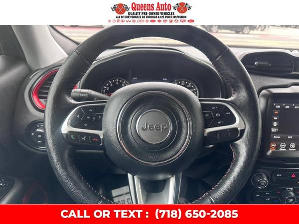 ✔️ 2021 Jeep Renegade Trailhawk 4x4 – Adventure-Ready, Loaded, and Waiting for You at Queens Auto Expo! ??Are you ready to conquer the road—and everything beyond it? Introducing the rugged, reliable, and refined 2021 Jeep Renegade Trailhawk 4x4, now available at Queens Auto Expo. With only 30,091 miles, this fully loaded SUV is the perfect combination of off-road capability, modern tech, comfort, and unmistakable Jeep attitude. Whether you're navigating city streets or tackling rugged trails, the Renegade Trailhawk is the ideal companion for drivers who demand performance, versatility, and style.Vehicle Overview:Year: 2021Make: JeepModel: RenegadeTrim: Trailhawk 4x4Mileage: 30,091 milesDrivetrain: Four-Wheel Drive (4x4)Exterior Color: Rugged yet refinedInterior Color: Premium comfortVIN: Available upon requestTitle: CleanCARFAX: Clean, No Accidents or Damage ReportedCondition: Fully serviced, professionally detailed, and showroom-readyFully Serviced and Detailed:This 2021 Jeep Renegade Trailhawk 4x4 has been meticulously inspected, serviced, and detailed by our expert technicians here at Queens Auto Expo. We pride ourselves on delivering only top-tier vehicles to our customers. This Renegade has undergone a comprehensive mechanical inspection to ensure it’s performing at its peak. Fresh fluids, tire checks, brake inspections, and multi-point diagnostics mean this SUV is turn-key ready. All it needs is a new home—yours!Clean CARFAX – Buy with Confidence!Peace of mind comes standard with this vehicle. This Renegade Trailhawk comes with a CLEAN CARFAX, meaning it has no history of accidents, title issues, or major damage. CARFAX reports are available upon request or can be accessed at www.queensautoexpo.com.Why Choose the Trailhawk Trim?The Trailhawk is Jeep’s elite off-road performer, engineered for those who go where others can’t. It boasts legendary Trail Rated® 4x4 capabilities including:Jeep Active Drive Low 4x4 SystemSelec-Terrain® Traction Management System with Rock ModeHill Descent ControlOff-Road Suspension TuningSkid Plates for Added ProtectionTow Hooks and Higher Ground ClearanceIt’s the Renegade you want when adventure calls—and one of the most capable subcompact SUVs in its class.Loaded with Features:This 2021 Jeep Renegade Trailhawk 4x4 comes fully loaded with advanced features and luxury upgrades, offering a perfect balance of comfort and functionality. Key features include:Technology & InfotainmentUconnect® 8.4-Inch Touchscreen DisplayApple CarPlay® & Android Auto™ IntegrationNavigation SystemBluetooth® Hands-Free Calling and Audio StreamingVoice Command with Steering Wheel ControlsSiriusXM® Satellite RadioUSB Ports & Auxiliary InputExterior HighlightsTrailhawk Exterior Styling with Trail Rated® BadgingBlack Roof Rails & AccentsAggressive All-Terrain TiresFog LampsDaytime Running LightsPremium Alloy WheelsRear Privacy GlassRoof Rack Rails – Ready for Gear & LuggageLED Signature Lighting Package (when equipped)Interior & ComfortPremium Cloth and Leather-Trimmed SeatsHeated Front SeatsPower Adjustable Driver’s SeatHeated Steering WheelDual-Zone Automatic Climate Control60/40 Split-Folding Rear SeatsAmple Cargo SpaceKeyless Entry with Push Button StartRemote Start SystemSafety & Driver AssistanceBlind Spot Monitoring with Rear Cross Path DetectionParkView® Rear Back-Up CameraLane Departure Warning PlusFull-Speed Forward Collision Warning PlusAdvanced Multistage Front AirbagsElectronic Stability ControlTire Pressure Monitoring SystemWe Finance EVERYONE at Queens Auto Expo!No Credit? Bad Credit? NO PROBLEM!At Queens Auto Expo, we believe everyone deserves a chance to drive the vehicle of their dreams. Our experienced financing team specializes in working with all credit situations—whether you're rebuilding credit, a first-time buyer, or dealing with previous financial hardships.Fast and Easy Financing ApprovalsLow Down Payment OptionsAffordable Monthly PaymentsCompetitive Rates from Trusted LendersTrade-Ins Welcome!Just bring your proof of income, valid ID, and you're halfway to owning this Jeep!Apply now online at www.queensautoexpo.com and get pre-approved in minutes!