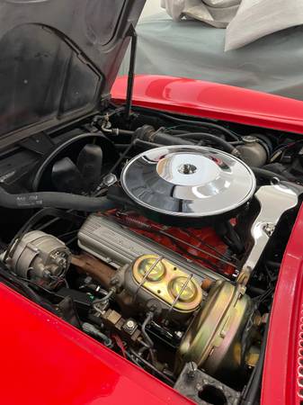 1964 corvette coupe 327/250hp with p/s, p/b and factory air conditioning Transmission is power glide. Car was painted red sometime in the past with original color tan. Mechanical restoration in 2020 with engine. Trans, rear rebuild. Electric, exhaust, suspension, interior replaced.