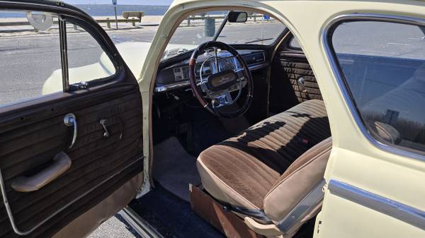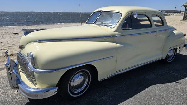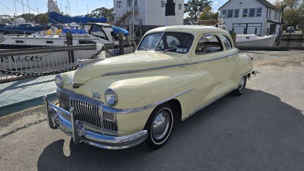 1946 Desoto Custom two door canary yellow. Interior is in very good condition, and the headliner is new. The engine is a 1971 dodge 3.2 198 6 cylinder with automatic transmission. Shifter is in the original position on the column. There is a new electric fuel pump. Vehicle starts, runs very well. Just had minor tune up done with all new drum brakes oil pan transmission and distributer gaskets rear seal new lock n key for trunk all new fluids passed inspection spend over $4000 dollars have receipts everything works Has original Desoto hubcaps. The body is all original, and solid. There is am/fm cd player detachable front plate mounted hidden in the glove box. Works very well. Speakers are hidden under the area behind the rear seat. the Desoto has no power steering with 12 volt upgrade and new wiper arms/wipers/battery/muffler/exhaust/speedomter cable/engine rebuilt, distributer, cap and rotator, 2 horns regular/wolf push buttons, car is an everyday driver and it is ready to go. If ad is posted it's still available not in a rush to sell just recently won 1st place in car show good luck OBO.just had additional work done over 3k have receipts