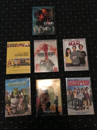Several DVDs of movies in original packaging. Hardly viewed. Kept in a smoke free/pet free home. Selling for $3 each but can buy several or the lot for a good price.