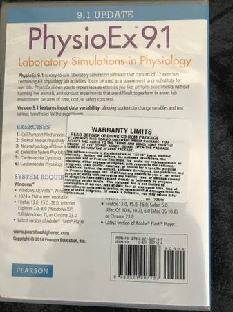 PhysioEx™ 9.1: Laboratory Simulations in Physiology is easy-to-use laboratory simulation software that consists of 12 exercises containing 63 physiology lab activities that can be used to supplement or substitute wet labs. PhysioEx allows students to repeat labs as often as they like, perform experiments without harming live animals, and conduct experiments that are difficult to perform in a wet lab environment because of time, cost, or safety concerns.