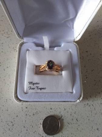 Mystic Fire Topaz Ring...14K over sterling Silver...Lab Created White Sapphire...size 7...new, never worn...$100 OBO...no shipping...meet up in Nassau County...
