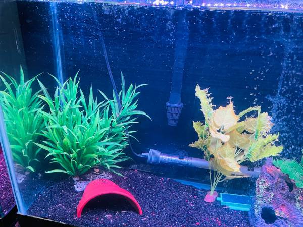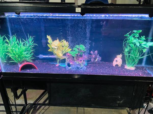 Hello, selling beautiful 55 gallons and fully cycled fish tank for sale . Tank , metal stand ,filter , heater 4 feet light with diff mode , air bubbler,gravel and all the decorations included. Tank is currently running with no issue.
