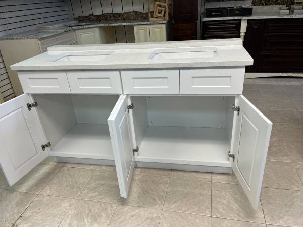 60" WHITE BATHROOM VANITY WITH COUNTER-TOP AND DOUBLE SINKS
