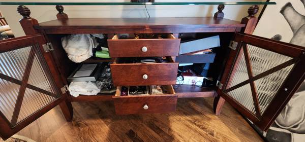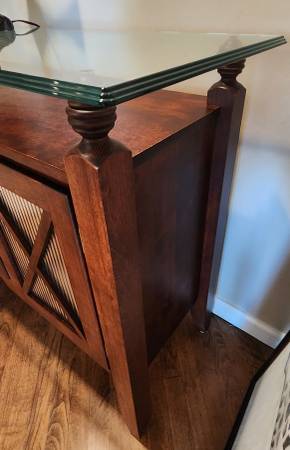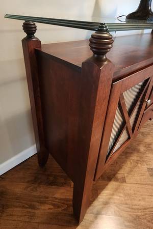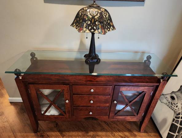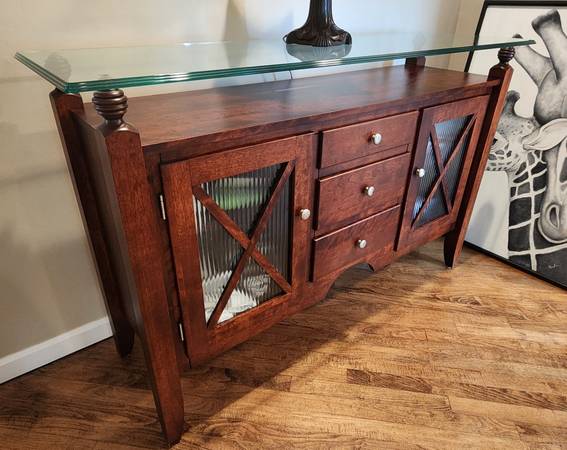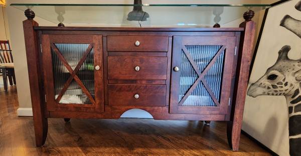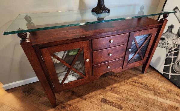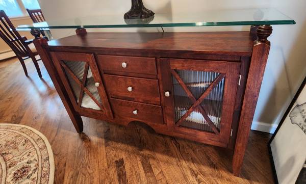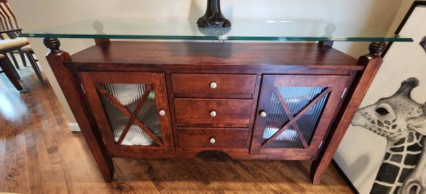 SERVER BUFFET SIDEBOARD SOLID WOOD 3 DRAW 2 DOOR GLASS TOP EXCELLENT CONDITION MADE IN CANADA BY CANADEL 36.5"H x 18"D x 58"L ***PICK UP ONLY*** **KINDLY CHECK MY OTHER LISTINGS THANK YOU** ***CALL...