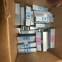 112 boxes of color brand new. These boxes are unopened and have never been used. In the listing you find a inventory list of all colors and how many boxes are in parenthesis next to the color code.