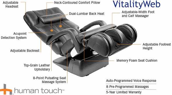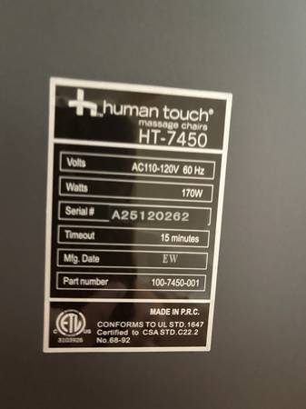 HT-7450 ZERO GRAVITY Human Touch Home Massage Chair / Recliner + Heat - Human Touch™ 7450...Top-of-the-line massage chair in a great condition (barely used). Features zero-gravity recline, full-body massage with 8 auto programs, body scan technology, dual lumbar heat , and foot/calf massage. Premium leather upholstery. Super comfortable and works perfectly. Original price $2999.99