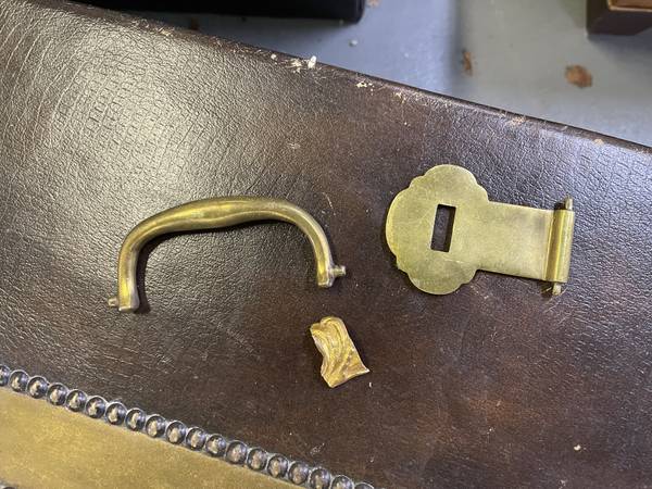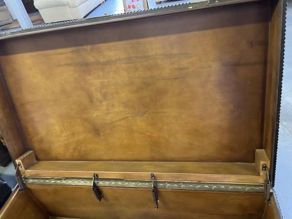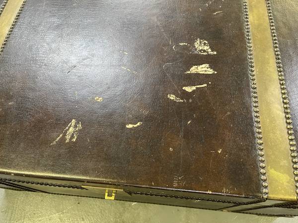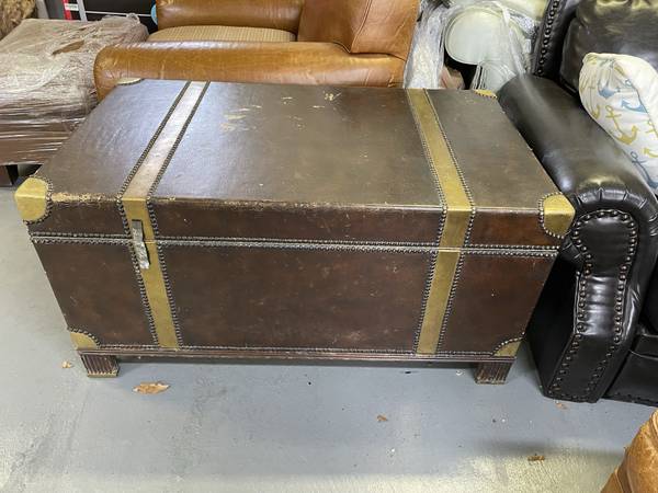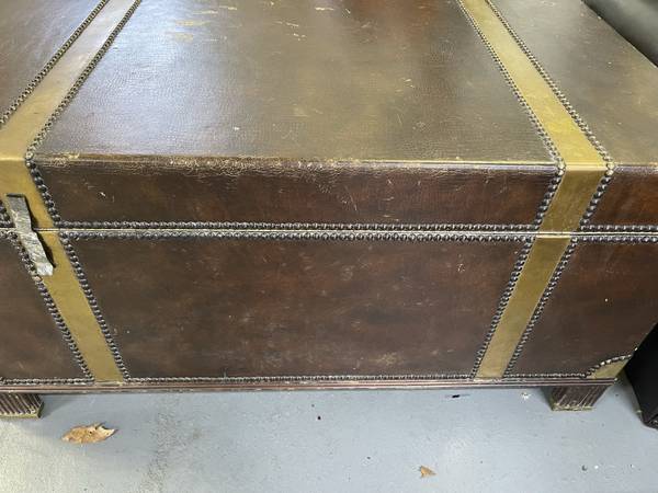 Storage Trunk Chest Leather Wrapped: 44" wide x 23" tall x 26" deep = $200
