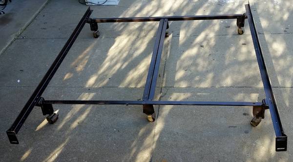 Queen size is 60 inches by 80 inches with center support bar on wheels