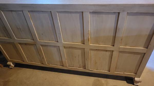 You are looking at a beautiful one of a kind piece that can be used as a Dresser or Hutch. This is made from solid wood in a white finish and features hand carved doors with iron hardware....