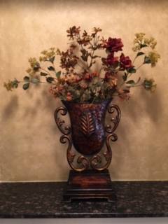 These two very stylish and decorative bronze vases are perfect in any room. Purchased for $89 + tax each vase(purchase price does not include floral arrangement).
