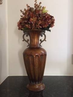The decorative vase is bronze in color. There are no scratches, no marks - NO flaws!