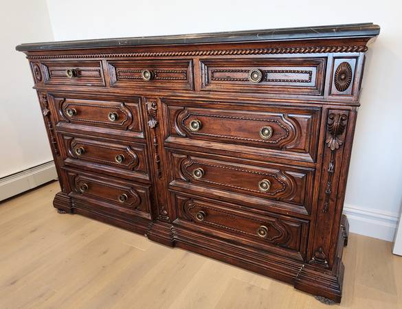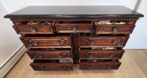 ***CALL ANYTIME ***CALL ANYTIME 516-69O-7212*** ***SOLID WOOD GRANITE TOP 9 DRAW DRESSER*** BEAUTIFUL SOLID WOOD 9 DRAW DOVETAIL DRESSER BLACK GRANITE TOP VERY LARGE TALL AND HEAVY SOLID DRESSER...