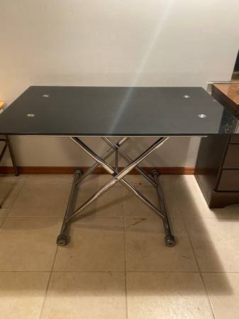 4 foot half-inch thick glass folding legs table Black glass $300 Cash only please call