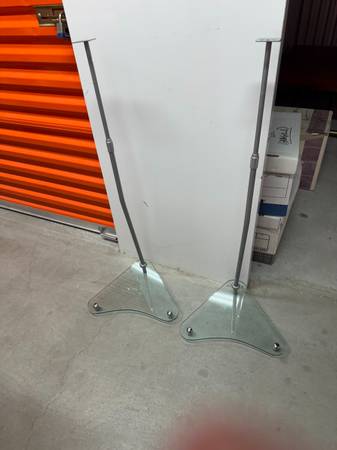 This listing is for a pair of metal Speaker Stands, which have adjustable heights. You are able to run wires to the tube to create a cleaner look for your home entertainment center. Zelle/ cash...