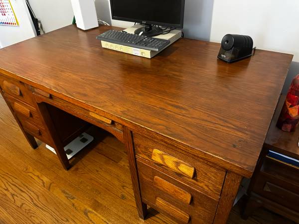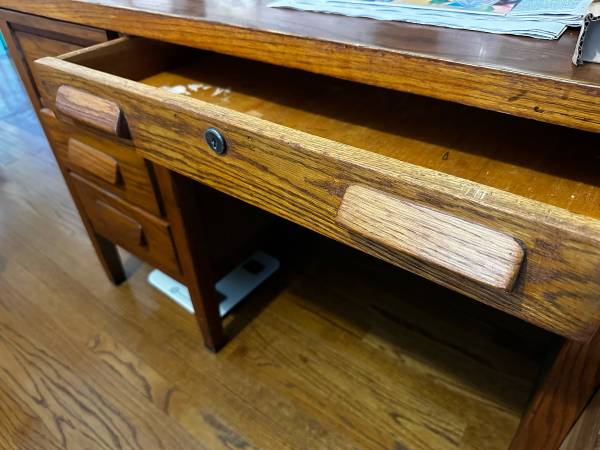 This is a rare find. Vintage school teacher desk. Hardwood. Excellent condition. Beautiful grain.