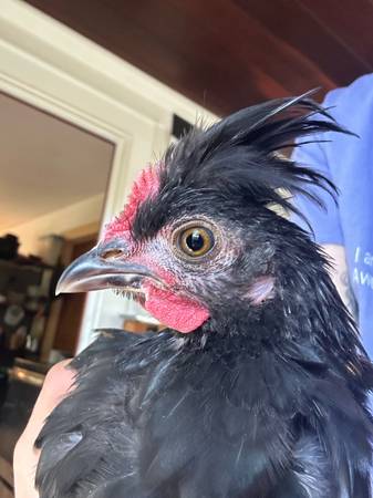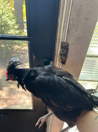 Tiny dwarf rooster. 4 months old. Fits in your hand. Polish Serama hybrid. Needs a new home. Has funny hair and colorful wings. Gets along well with his sister chickens.