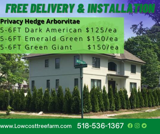 Call or Text Rob at: www.LowcostTrees.com Order now Fall Install Installs happening now!!!!! Going fast.... FREE Delivery FREE Installation Our beautiful, full and bushy arborvitaes perfect for a...