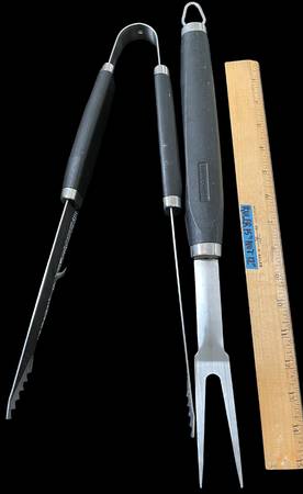 BBQ tools lightly used Tongs about 15" Fork about 17"