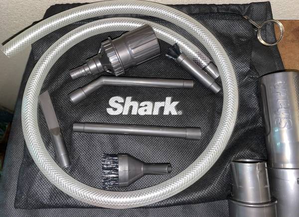 Attachments only no console Probably a full set Includes 2 shark cloth bags, 1 for the micro attachments and a larger one for everything New old stock