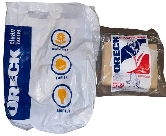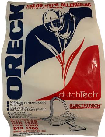 New old stock For Oreck canister vacuum models: DTX-1100 DTX-1200 DTX-1300 DTX-1400 Includes: 5 bags 1 motor filter 1 exhaust filter Vintage Oreck plastic shopping bag See photos for more info