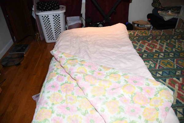 1-Blue & White Flowered Reversible to Light Blue (has some tiny tears on light blue side) - Twin XL or Full 78" x 80" (appr): $10