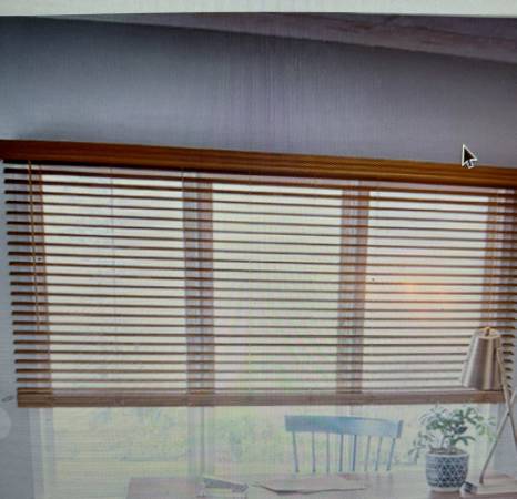 The Hampton Bay Real Wood Blinds in Golden Oak are stylish Venetian blinds perfect for any room in your home. Made of wood, these blinds feature a pull cord for easy adjustability and are mounted on the window frame. With a luxurious brown color and attached rails, these blinds add a touch of elegance to your windows. The dimensions of 37" wide and 63" long make them suitable for most standard windows, while the medium to heavy weight ensures durability and stability. Upgrade your home decor with these classic and timeless wood blinds. Complete with all hardware. 3 available ,also sold separately
