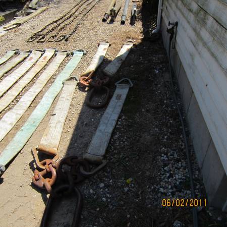 I have a nice amount of rigging,chains,spreader bars,hooks and shackles. It is for lifting huge heavy things it wood be for Cranes,heavy equipment,tow trucks,just about everything.there is a couple slings that can turn your hooklift truck into a towtruck .The hooks and shackles are uge and the chains are 20' and 5/8 .it is from the military so it is the best quality and the price tag said over 15k for this kit.I will sell individual pieces or everything for 2800.00