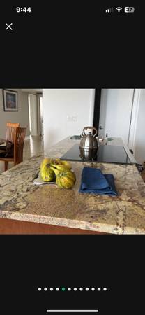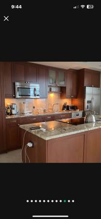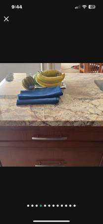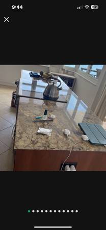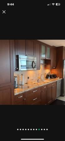 Used 8ft by 3ft approximately island. Cabinets counter tops. Stove, refrigerator dishwasher. Excellent conditions. All appliances kitchen aid. Everything like new.
