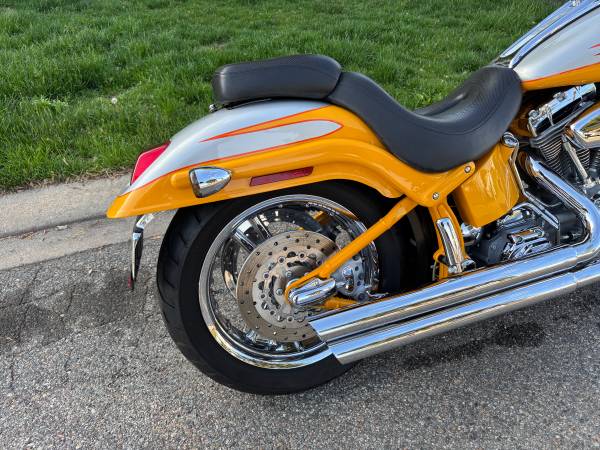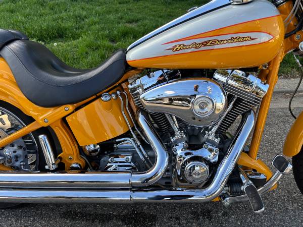 Only 7,000 miles, all original, just serviced, new battery, new tires in 2016. FXSTDSE² crafted by Harley , custom leather seat with chrome inserts, Detonator three-spoke custom wheels and matching rotors, dual front disc brakes, and lowered front and rear suspension. A custom Yellow Pearl and Platinum carried right down to the color-matched frame, Only a limited number of these were produced.The fuel injected Big Bore Twin Cam 95 cubic inch powertrain provides the power you crave, right from the factory