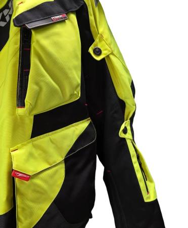2 hand-warmer pockets, 1 forearm key pocket, 1 chest pocket and 1 rear cargo pouch, with YKk® Japanese waterproof