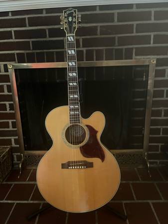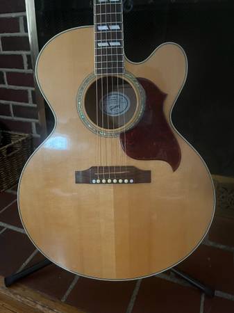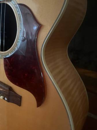 Gibson J-185 EC Natural acoustic-electric guitar for a/k/a Blues King for sale. OHSC included. Beautiful flamed maple back & sides. Guitar is near mint, with the execption of the pickguard which...