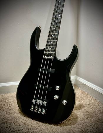 This bass was made in the USA in the 1990s. It is in excellent condition and it both plays and sounds really great. It is all of its original stock parts. The Carvin pickups are noiseless and they have a really full sound and feel to them. It has the high quality Carvin tuners. It has a perfectly cut graphite nut, and a top of the line Switchcraft jack. It has a neck through construction for a very smooth playing experience all across the full 34 inch scale length gorgeous ebony fretboard.