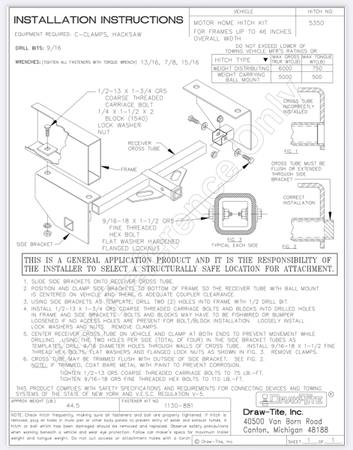 * Multi-fit motor home hitch fits motor homes (RVs) with chassis from 24" to 46" wide