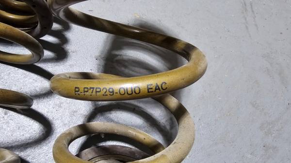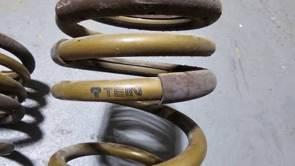 Aside front the dust/dirt, springs are in excellent condition. They provide for a much firmer and more responsive ride than stock and lower the car by a little over an inch for a more aggressive stance. I believe these are out of production so they'll be hard to find.
