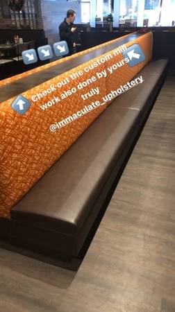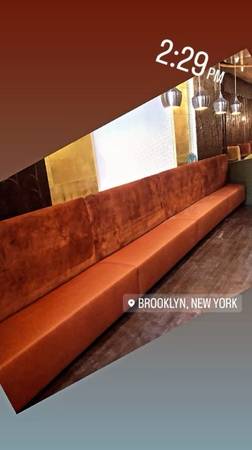 Immaculate upholstery is now offering their services on craigslist, we do residential, as well as commercial work we do everything from custom banquettes, Ottomans, dining room, & living room chairs wall upholstery, Sofas, custom beds, We also specialize in window treatment. Just bought a restaurant and there is already banquettes in the establishment? And one just wants to freshen them up we also offer Reupholstery services. There isn’t a job too big or too small just give immaculate upholstery a call and somebody will assist you on your free estimate. We do work for some of the biggest restaurants in Manhattan and also the tri-state area as well as other states. Some restaurants that we have done work for are Brooklyn chophouse Ruth Chris, steak House, STK steakhouse the Kimberly hotel the 4040 club, Hollywood hotel, Stardust, diner, AMC movie, theater and many more. There isn’t any job to big or to small if you have some dinning room, kitchen, living room seats you want to get done contact us also doing gym equipment and wall upholstery with our new track style method so you’ll have a clean finishing look! Below are some pictures of some of the work that we have done for our clients. Thank you. We guarantee to have the best prices when it comes to this type of skilled work. If we don’t answer when you call please leave a detailed voicemail or a text message. 7186071584